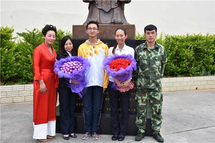 鄭博文攜媽媽回校探望時(shí)正值第34個(gè)教師節(jié),他和媽媽手捧鮮花獻(xiàn)給老師們給予良好的祝愿,為教師節(jié)增添了一份斑斕與溫情。在與老師們的交流中,鄭博文調(diào)皮地說(shuō):“雖然老師每次都說(shuō)我們是最差的一屆,但畢業(yè)后,老師卻總說(shuō)我們是最好的。感謝好孩子的老師們,包容我所有的叛逆,正是你們的耐心教導(dǎo)與引領(lǐng),才讓我在青春年華的叉路口,正確選擇通往理想的康莊大道上,在這里10個(gè)月的磨煉,很值!”