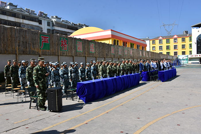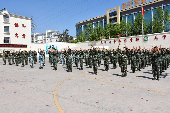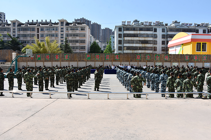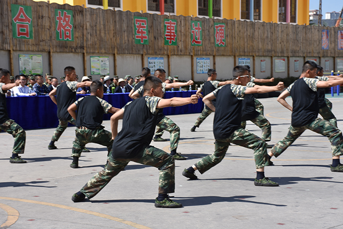 在教官的帶領下,我校男女生隊列、擒敵拳、棍術及棍術對打、軍體拳、葫蘆絲合奏《荷塘月色》、《女兵操》等方隊相繼出場。隊列方隊的同學們精神飽滿、口號響亮、步伐鏗鏘、隊形整齊,展現(xiàn)了良好的精神風貌;棍術方隊的表演也深深吸引了大家的眼球,一招一式,一起一落,剛勁有力,被同學們演繹得淋漓盡致,帥氣瀟灑;軍體拳方隊的同學們也毫不遜色,出拳帶風,出腿起塵,踢腳勾拳,嫻熟連貫,展現(xiàn)了頑強拼搏和勇做時代弄潮兒的決心;葫蘆絲合奏的《荷塘月色》,清幽典雅,跟著旋律有如身臨其境,仿佛有種荷塘晚風吹拂的清涼,一幅夏日荷塘月色的動人畫卷頓時呈現(xiàn)在大家眼前,也傳遞出孩子們對淡雅事物的美好追求;女兵操表演剛柔并濟,歡快向上,展示出孩子們的健康與活力。即將啟程去川師大附中安寧校區(qū)任教的老師們表演的擒敵拳,則讓我們眼前一亮。歷時近一個月的訓練,他們精氣神十足,精彩的表演,既向我校交了一份滿意的答卷,也向川師大附中安寧校區(qū)領導展示了攻堅克難、率先垂范、團結一心,不做出成績誓不罷休的決心。王校長看后,非常欣慰。