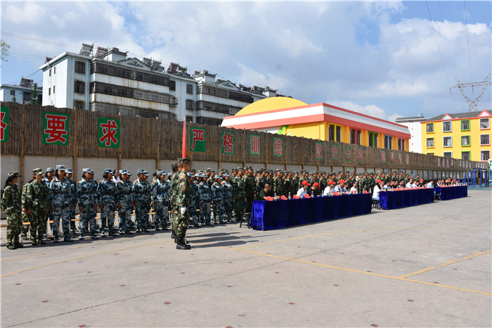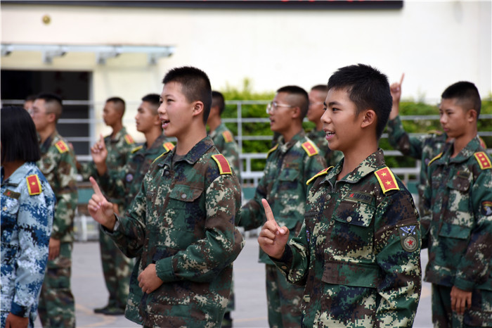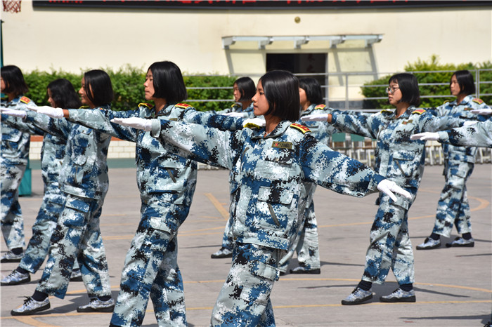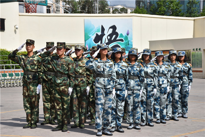 參觀結(jié)束,全體人員在操場集合。國旗手英姿颯爽、精神抖擻地入場,進行了莊嚴的升國旗儀式,師生們軍容嚴整,行著標(biāo)準的軍禮注視著五星紅旗冉冉升起。隨后,軍事匯報表演在迎校旗中拉開序幕。