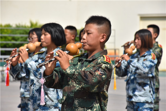 在教官的帶領(lǐng)下,我校男女生隊列、軍體拳、匕首操、葫蘆絲合奏《荷塘月色》、《女兵操》、手語《我相信》等方隊相繼出場。隊列方隊的同學(xué)們精神飽滿、口號響亮、步伐鏗鏘、隊形整齊,展現(xiàn)了良好的精神風(fēng)貌;軍體拳方隊的表演也深深吸引了大家的眼球,出拳帶風(fēng),出腿起塵,踢腳勾拳,嫻熟連貫,帥氣瀟灑,被同學(xué)們演繹得淋漓盡致;匕首操方隊的同學(xué)們也毫不遜色,一招一式,一起一落,剛勁有力,展現(xiàn)了頑強拼搏和勇做時代弄潮兒的決心;葫蘆絲合奏的《荷塘月色》,清幽典雅,跟著旋律有如身臨其境,仿佛有種荷塘晚風(fēng)吹拂的清涼,一幅夏日荷塘月色的動人畫卷頓時呈現(xiàn)在大家眼前,也傳遞出孩子們對淡雅事物的美好追求;《女兵操》表演剛?cè)岵,歡快向上,展示出孩子們的健康與活力。
