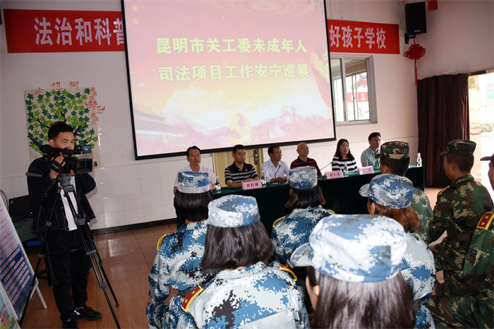 活動開始,趙主任首先就未成年人司法項目工作在預防青少年犯罪和青少年觸法權益維護工作中的重要性,以及政府在開展未成年人司法保護工作中的努力和成效,向大會作了精彩致辭。隨后,趙主任還對孩子們作了殷切勉勵:“這是我第四次來好孩子學校,雖然每一次來基本都是新面孔,但每一次來給我的印象都很深,很感動。我曾是一名軍人,孩子們現(xiàn)在端正的坐姿、整齊的鼓掌以及良好的精神面貌,都讓我無比的自豪和欣慰,你們都是好孩子,出去也會是一個好兵。希望孩子們珍惜好人生的經歷,珍惜好在好孩子的這段時光,努力提升自己,樹立遠大目標,將來做一個德才兼?zhèn)涞娜!?br style="font-family: ;"> 隨后,趙主任一行在我校魯植校長的陪同下,深入學校教學樓、宿舍樓等實地查看了校園環(huán)境,并在多媒體教室觀看了學校教學活動短片。其間,魯校長向趙主任詳細匯報了學校近期的各項教育教學工作開展情況。聽后,趙主任對我校的各項工作給予了高度肯定,尤其是夸贊學校法治宣傳教育開展得有聲有色,每年都有不一樣的新內容呈現(xiàn)出來,無愧于“昆明市青少年法治教育基地”這個光榮稱號。