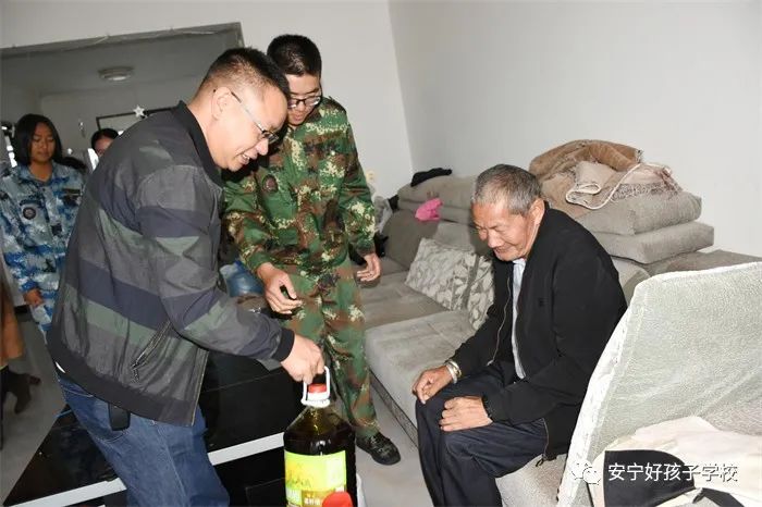 上午九點,在光明社區(qū)李金蓮書記及副主任張蕊的陪同下,學(xué)校執(zhí)行校長尹斌親自帶領(lǐng)部分老師和學(xué)生,深入老人家中,噓寒問暖地與老人聊天拉家常,關(guān)切地詢問老人的身體健康狀況和生活起居情況,叮囑他們要保重身體。每到一戶,尹校長和孩子們都把提前準(zhǔn)好好的生活用品送到老人手中。