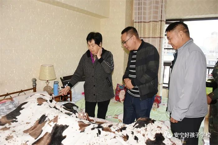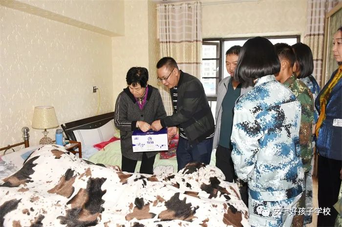 由于時間關(guān)系,雖然每到一戶看望老人的時間不是很長,但師生們的一聲問候,幾句細(xì)語,微不足道的生活用品.....這些小小的舉動,卻像大大的太陽溫暖著老人們的心,讓老人們眼里不時泛起了淚花,緊握師生的手遲遲不愿松開!