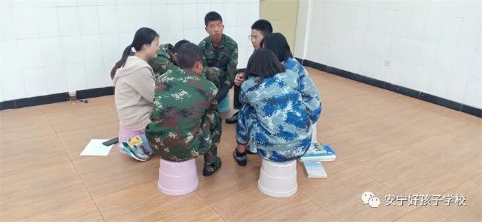 為活躍團(tuán)體氛圍,心理輔導(dǎo)老師們巧妙地設(shè)計(jì)了趣味熱身活動(dòng)。如使用“幸運(yùn)的是……不幸的是……”句型造句接龍;故事接龍——每一成員說一故事情節(jié),可以是時(shí)間、地點(diǎn)、人物、事件等,共同編述成一個(gè)完整的故事!捌票庇螒蜷_始后,全員便參與進(jìn)來,瞬間拉進(jìn)了彼此間的心理距離,也為團(tuán)體成員間更進(jìn)一步的交流掃除了障礙。