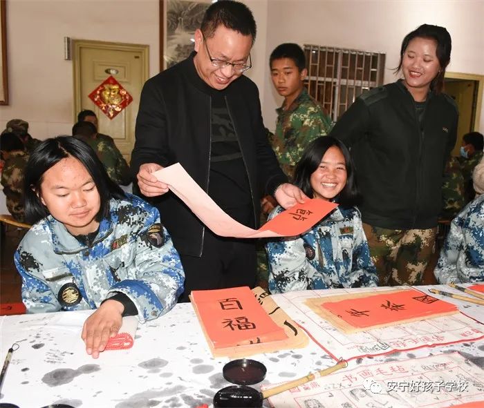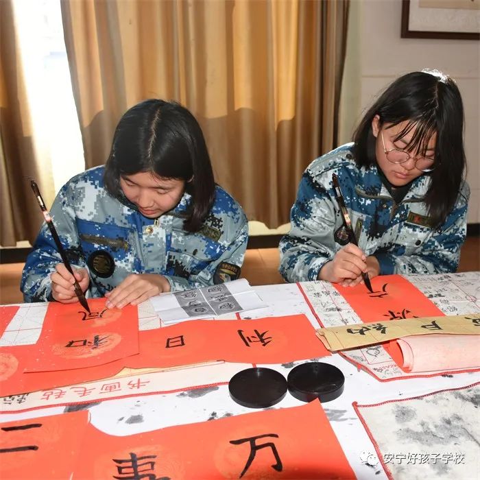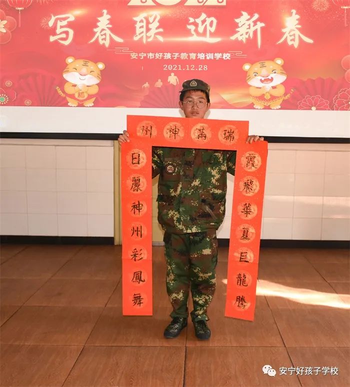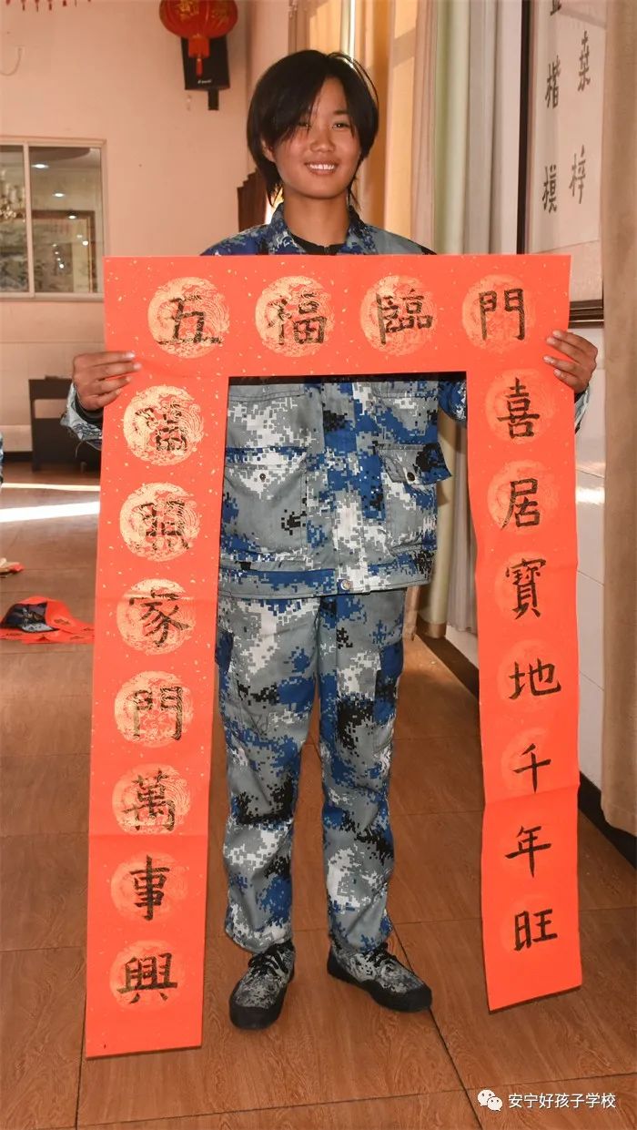 同學(xué)們在書寫之余,還紛紛拿起自己的作品,進行拍照留念,并把新一年的美好祝福絡(luò)繹不絕地相繼寄回家,讓春聯(lián)帶著祝福溢滿自己的家園。
