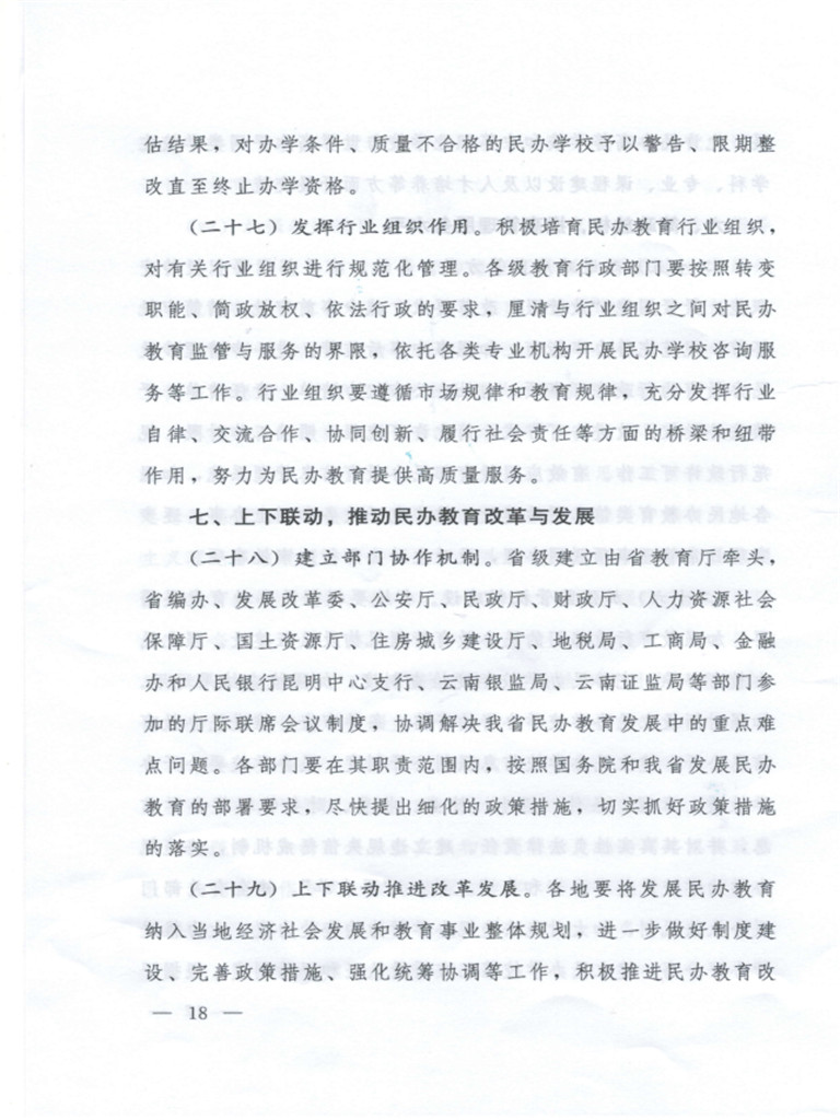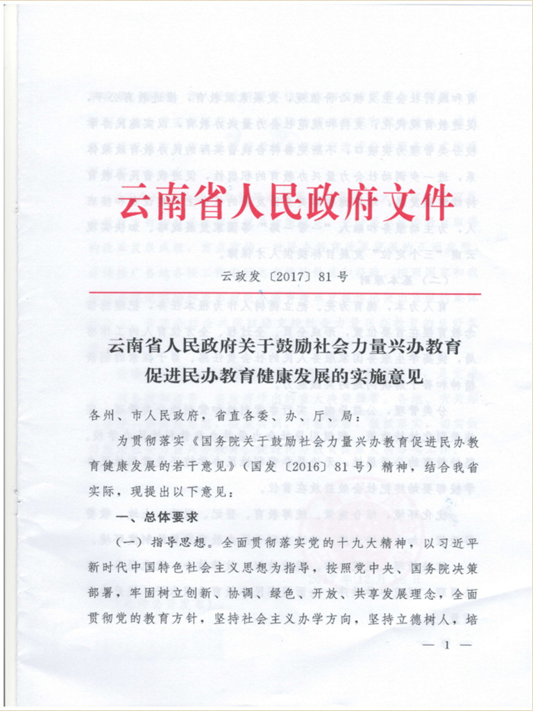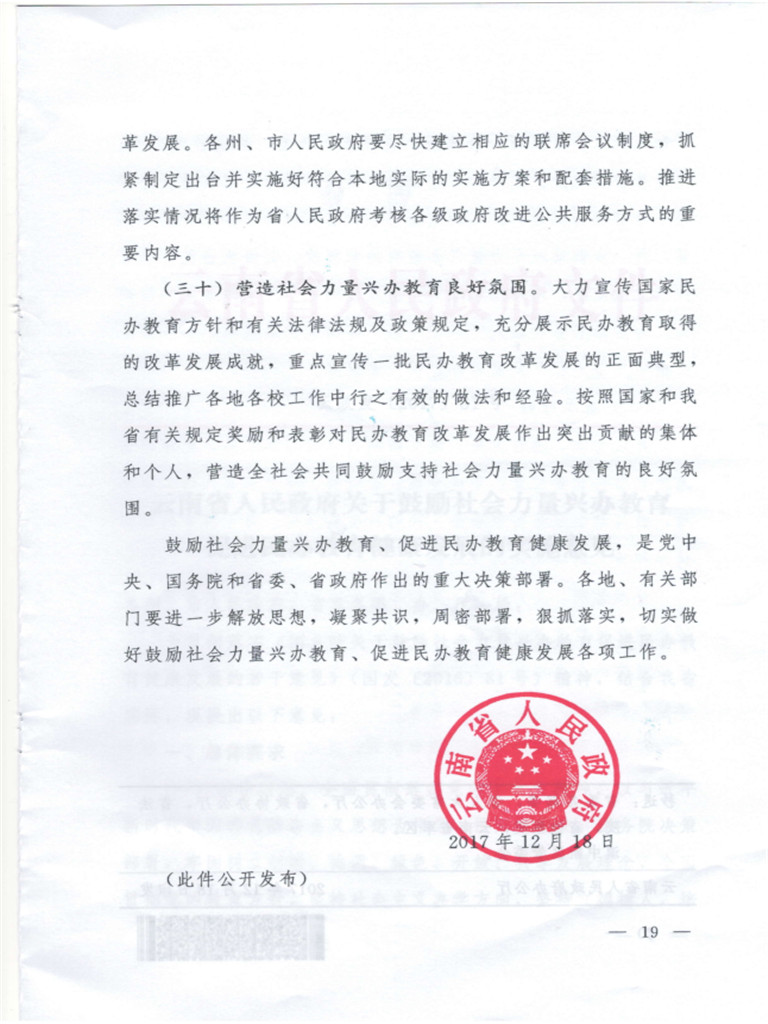 云南省人民政府關(guān)于鼓勵社會力量興辦教育促進民辦教育健康發(fā)展的實施意見