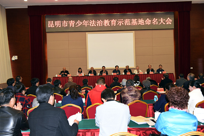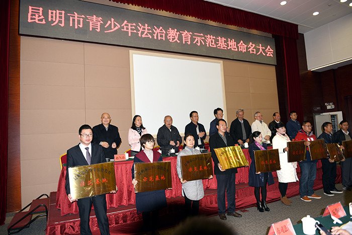 2017年11月3日,昆明市青少年法治教育示范基地命名大會在昆明市行政會議中心舉行。省關(guān)工委常務(wù)副主任鮑德珠、市關(guān)工委主任李莊、副主任管宏亮、市委政法委副書記郭沫彪、市未成年人司法項(xiàng)目組指導(dǎo)辦主任趙久詩、市教育局副局長蔣堅(jiān)橋、市司法局黨委副書記徐艷波等領(lǐng)導(dǎo)以及19個(gè)縣(市)區(qū)、開發(fā)(度假)區(qū)關(guān)工委、司法局、教育局、政法委領(lǐng)導(dǎo)及命名單位代表等100余人參加了會議。會議命名表彰了好孩子學(xué)校等9個(gè)“昆明市青少年法治教育示范基地”。